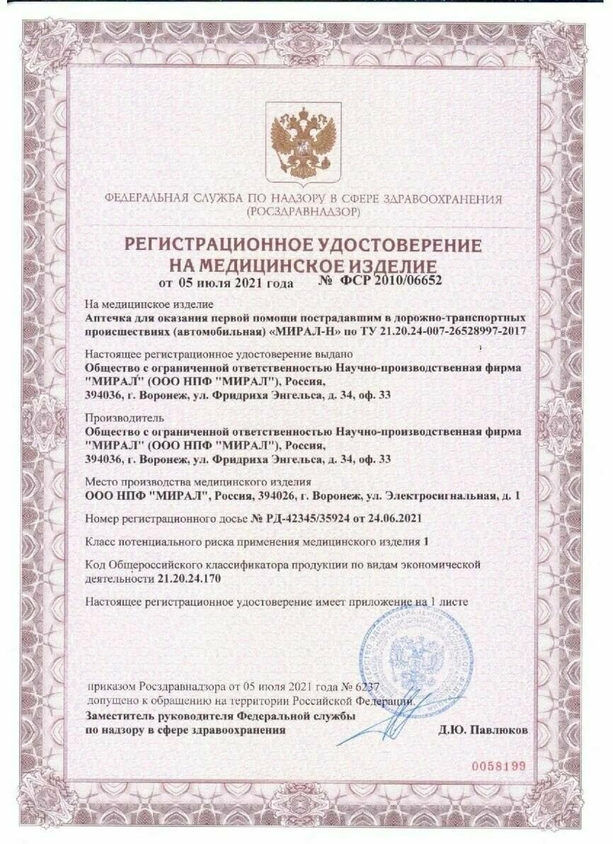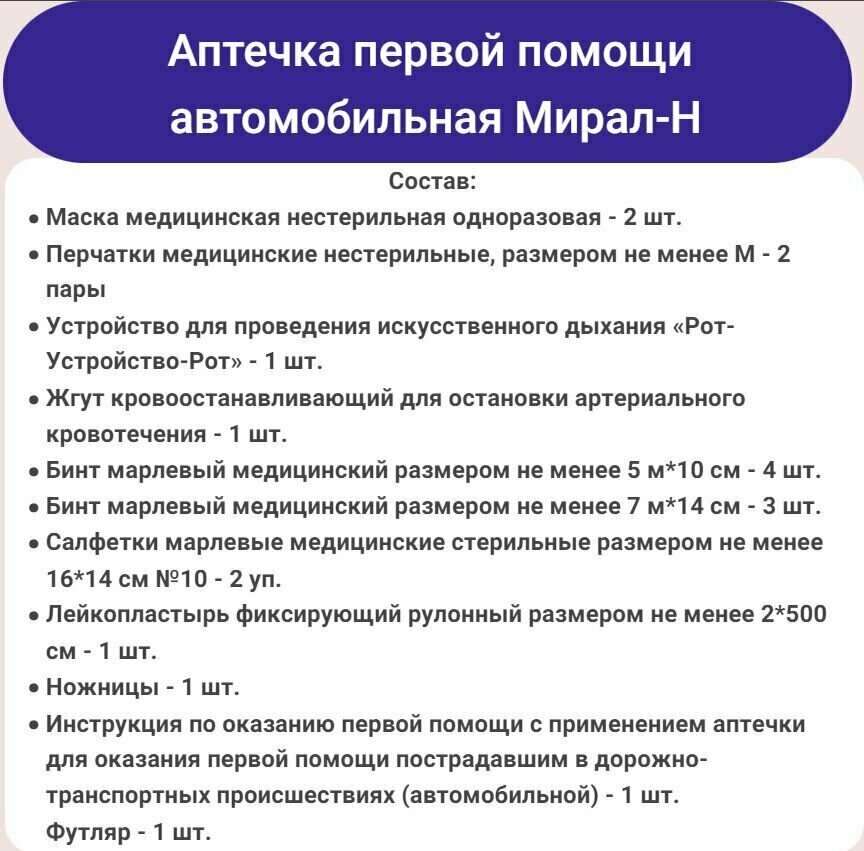 Аптечка первой помощи автомобильная Мирал-Н, новый состав по приказу № 1080н интересное: