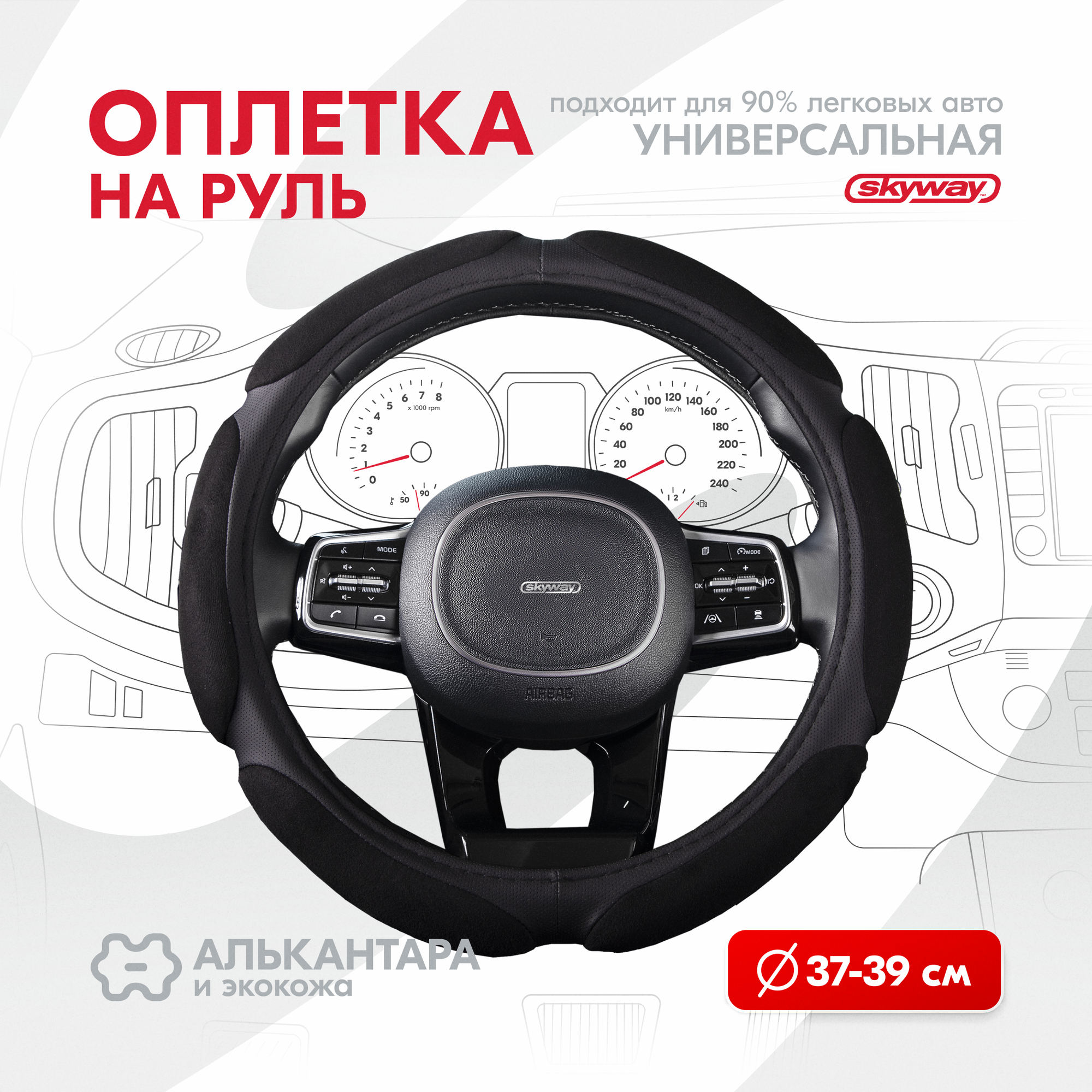 Оплетка руля SKYWAY Sponge Classic M 37/38/39, алькантара/экокожа, черный, размер М, S01101018