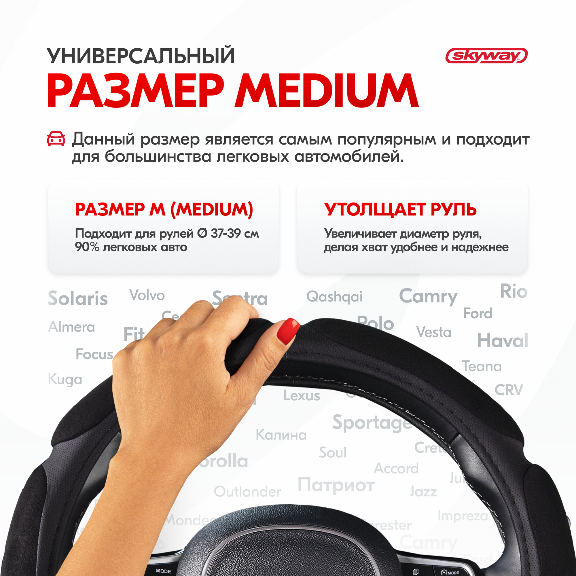 | Плюсы: | качественная, приятная на ощупь оплетка на руль |