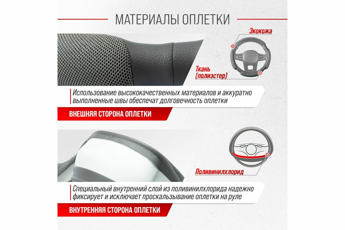 Оплетка на руль Top-12 SKYWAY M (37-39) серый экокожа, S01102501