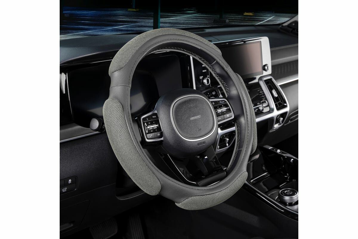 Оплетка на руль Sponge grid SKYWAY M (37-39) серый экокожа, S01102384