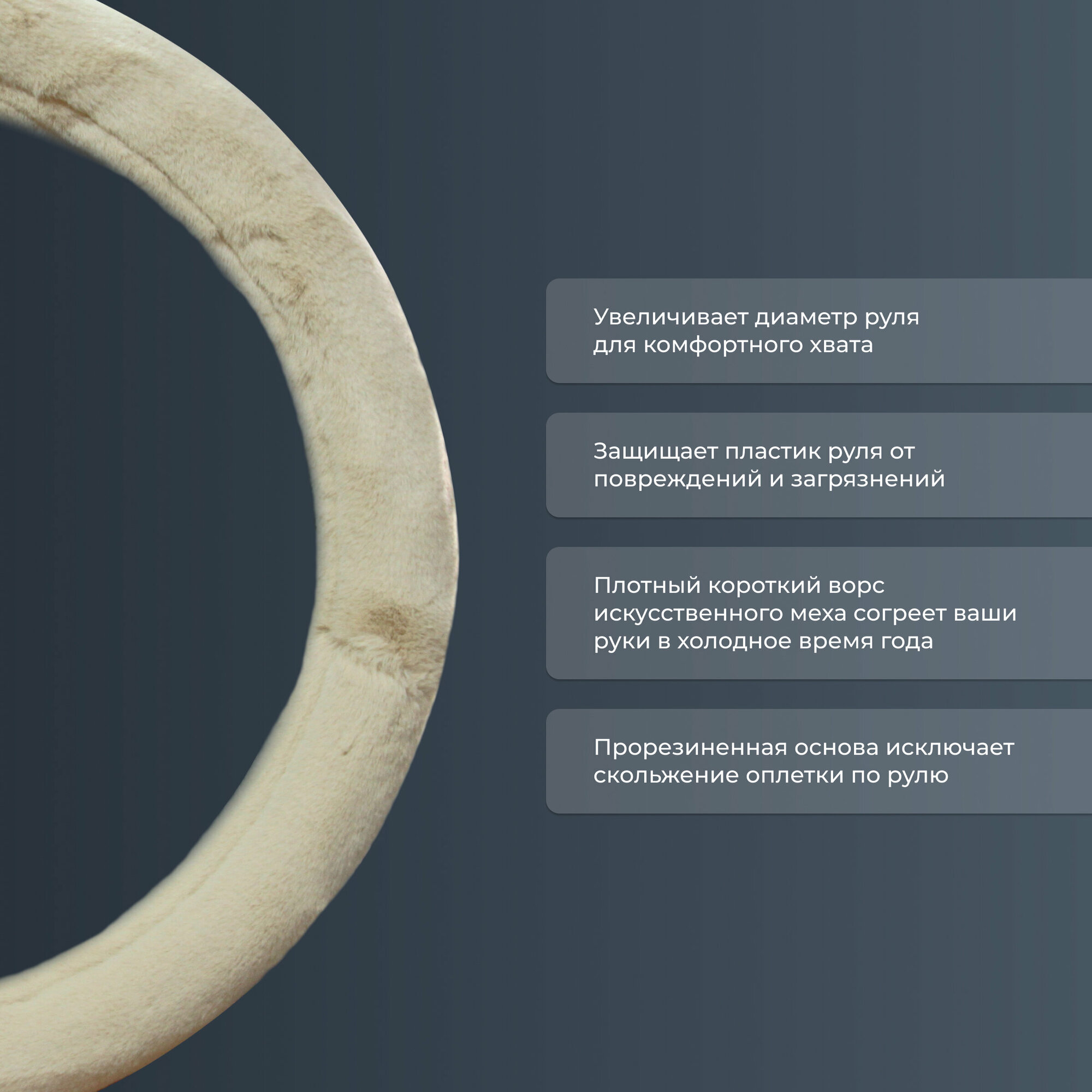 СохранитьОплетка чехол на руль из искуственного меха PSV ARKTIK (Бежевый) М 37-39 см, 132382 интересное: