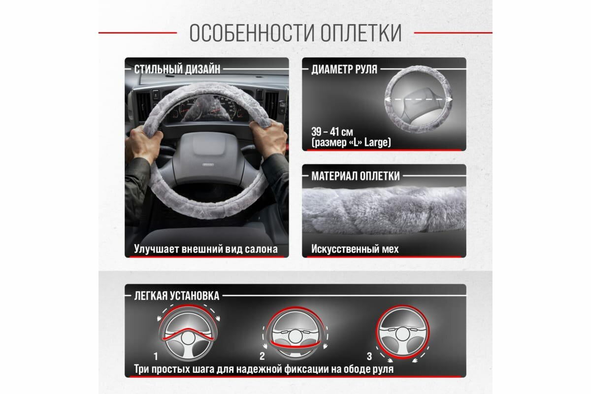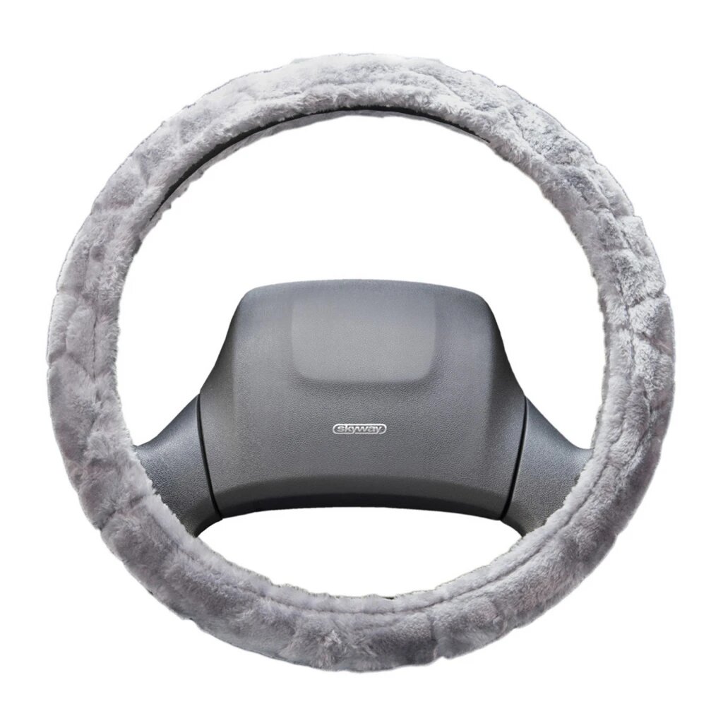 Оплётка руля SKYWAY меховая искуст серая ECO (L)