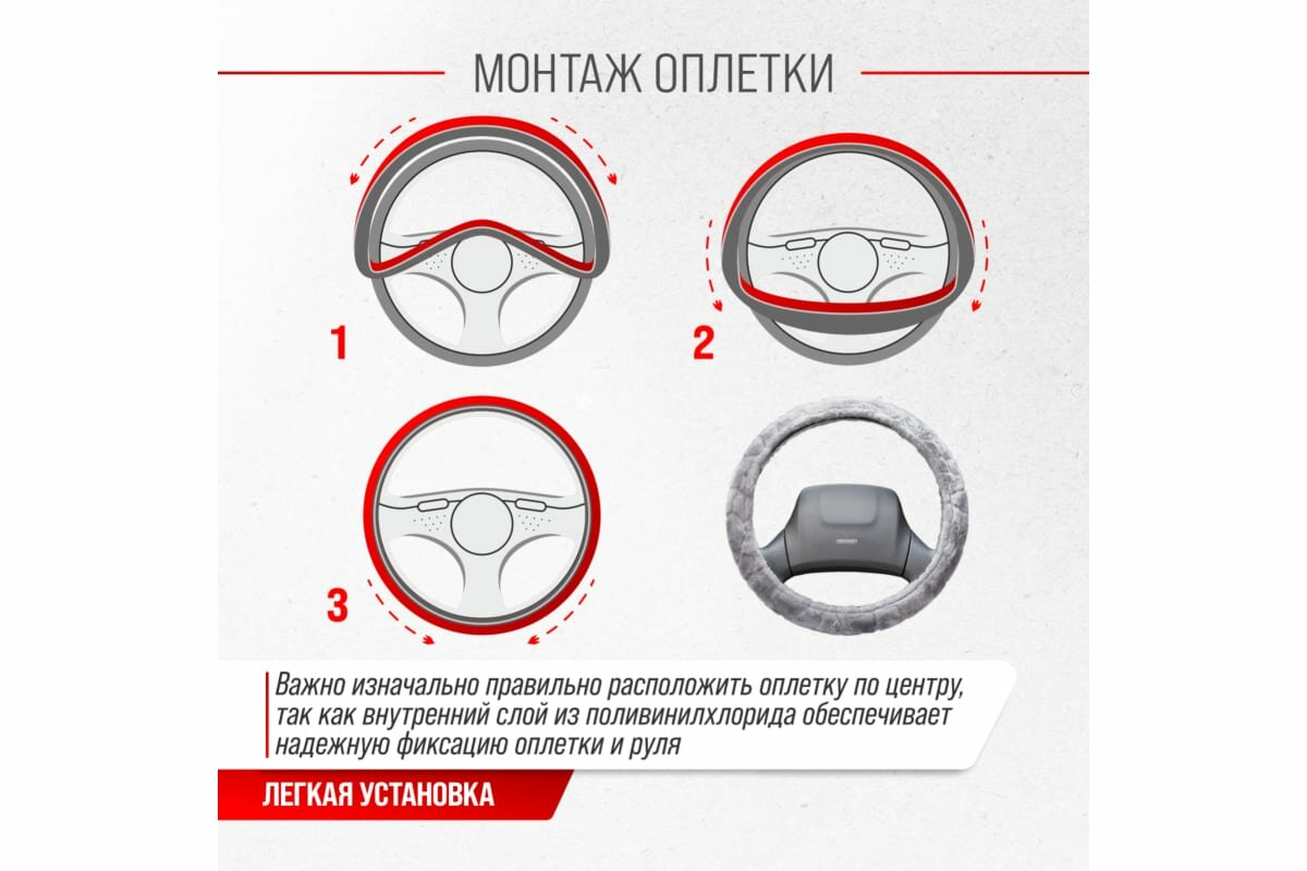 | Дополнительная информация | Рекомендации производителей: выбирайте оплётку под размер вашего рулевого колеса. Неверно выбранный размер может стать причиной проскальзывания оплётки или привести к невозможности снять или надеть её на руль. |