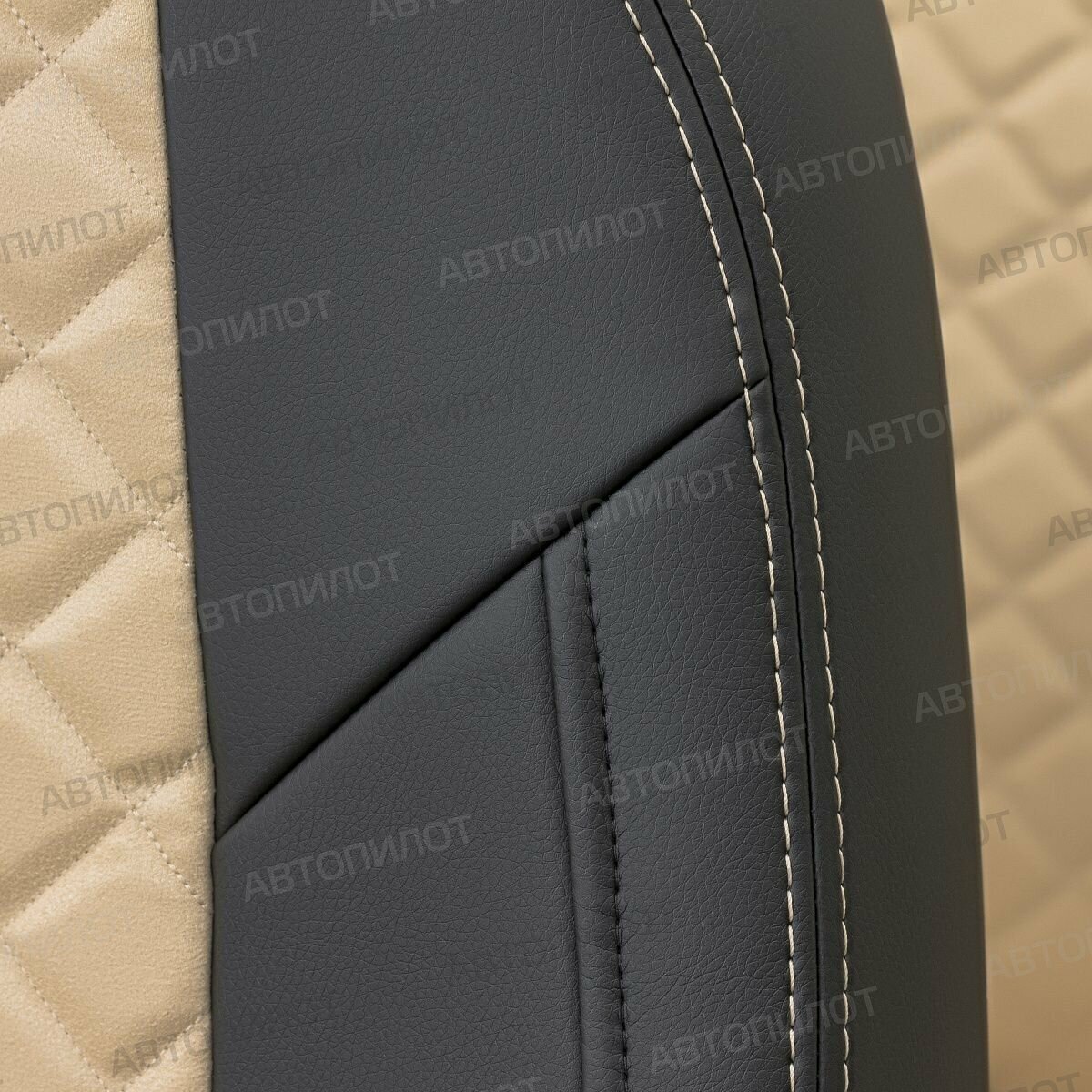 Чехлы на Ford Focus 3 седан, хэтчбек, универсал (2011-2019) Sport/Titanium, Экокожа Ромб, Черный + Темно-бежевый , Автопилот, fo-fo-f3s-chetb-r