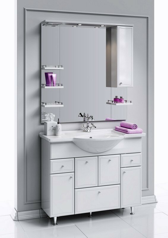 Напольная тумба Aqwella Barcelona 105 под умывальник Стиль 1050. Три ящика,три дверцы и бельевая корзина. интересное: