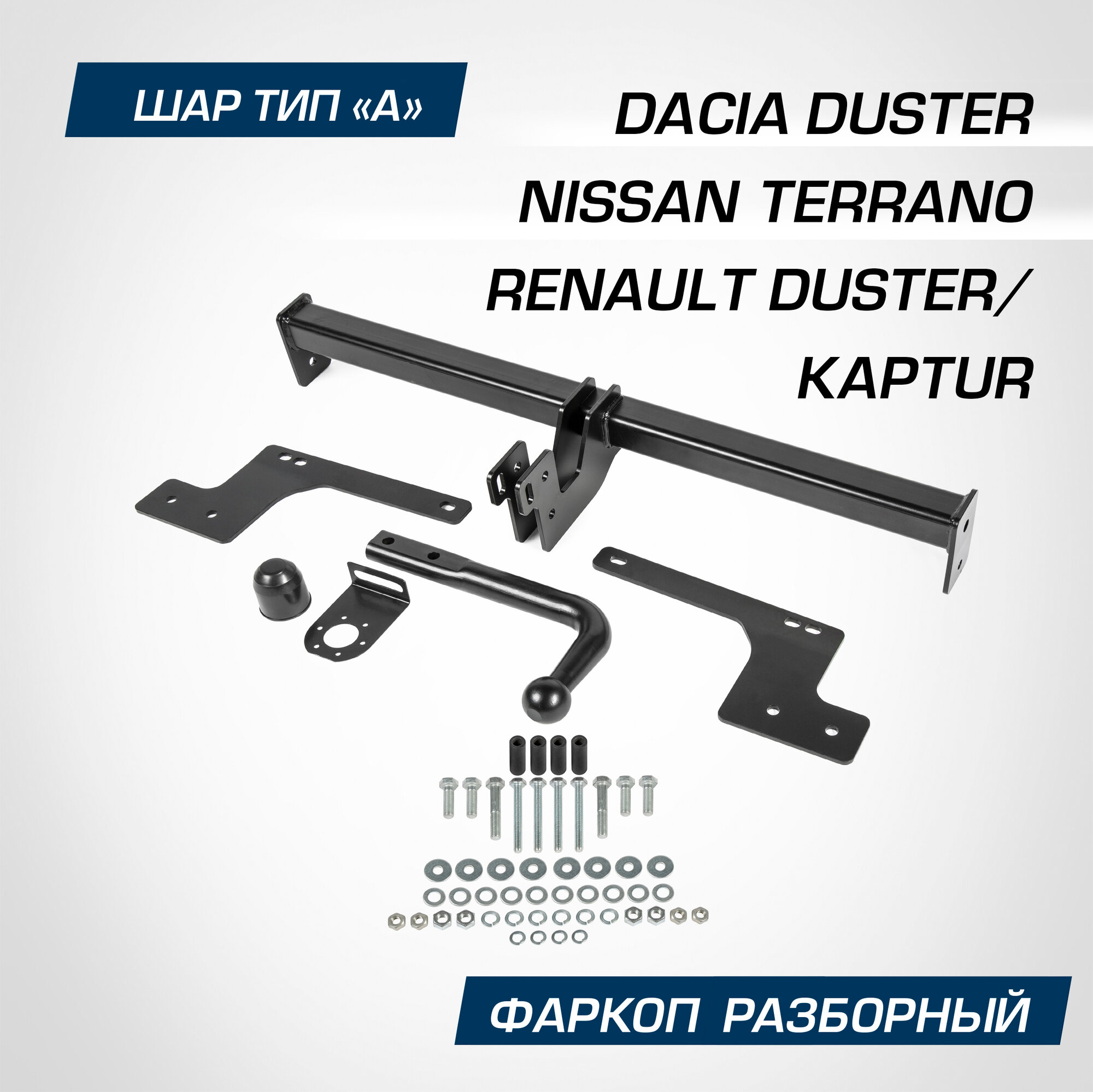 Фаркоп разборный Berg для Nissan Terrano III 2014-2017 2017-/Renault Duster I, II 2010-2021 2021-/Kaptur 2016-2020 2020-, шар A,1200/75 кг, F.4711.001