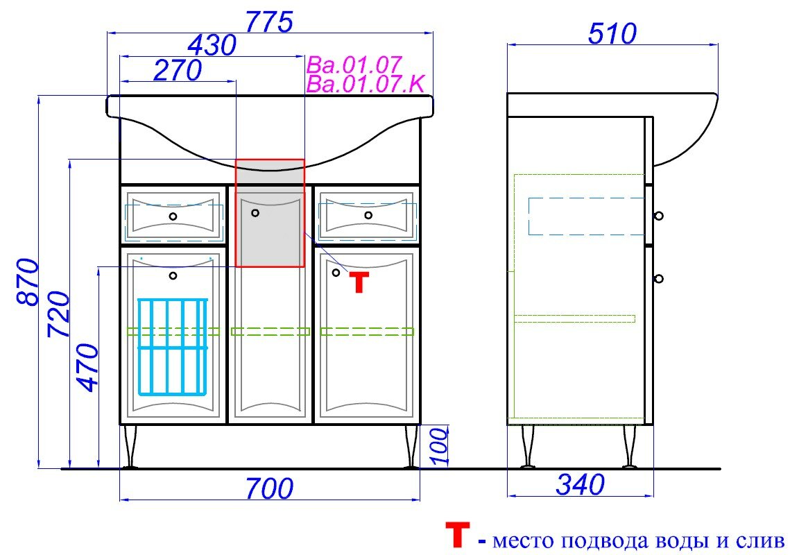 Тумба под умывальник Aqwella Барселона 70 напольная с двумя ящиками и корзиной, белый BA0107K интересное: