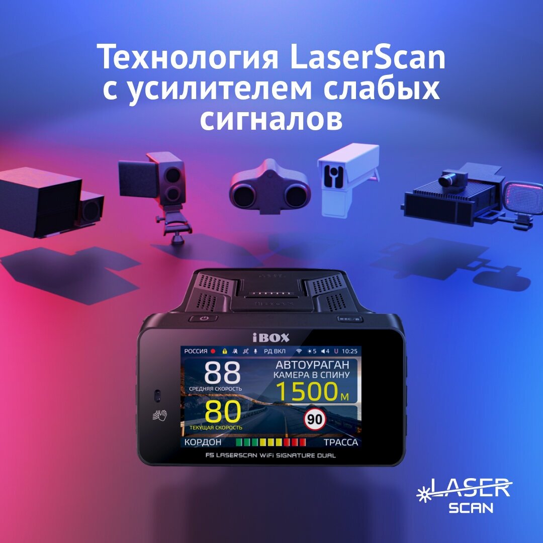 Видеорегистратор с сигнатурным радар-детектором iBOX F5 LaserScan WiFi Signature Dual