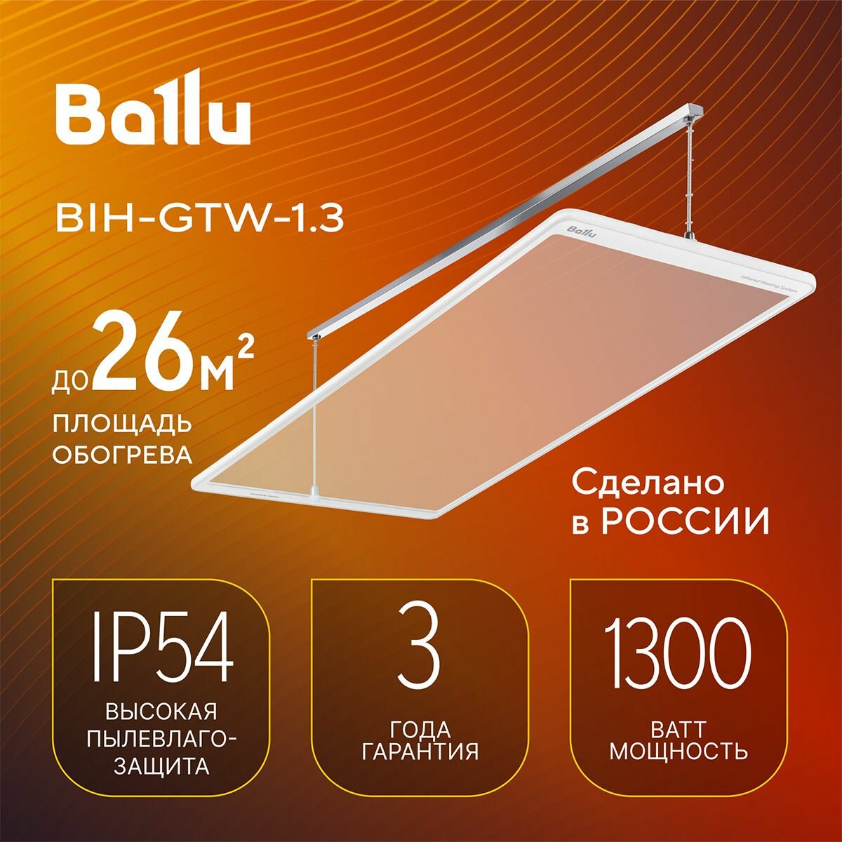 Инфракрасный электрический обогреватель Ballu BIH-GTW-1.3 1300 Вт