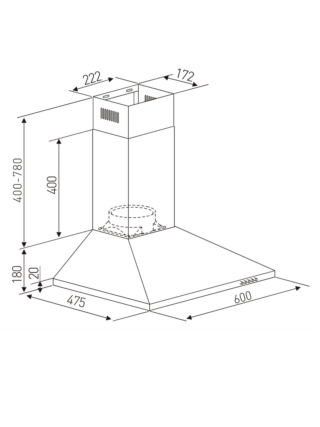 Вытяжка купольная GRAVITA 640wh, 60 см, цвет белый (угольный фильтр LC4 в комплекте)