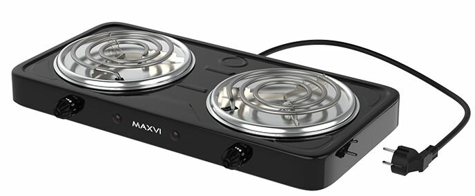 Купить Плитка электрическая MAXVI HE201, 2000 Вт, черный, 2 стальные конфорки
