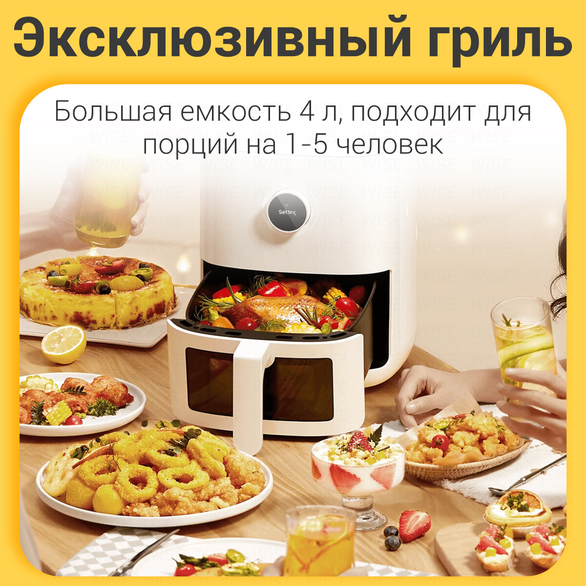 Кому важно: эта версия отлично подходит для порций на двоих. Да, есть решётка как бы для второго уровня, но еду тогда нужно будет в процессе готовки перекладывать, чтобы всё равномерно приготовилось. Если вам нужно побольше места, то есть и другие модели на больший литраж объема, но насколько я знаю, у тех версий нет русского языка. |