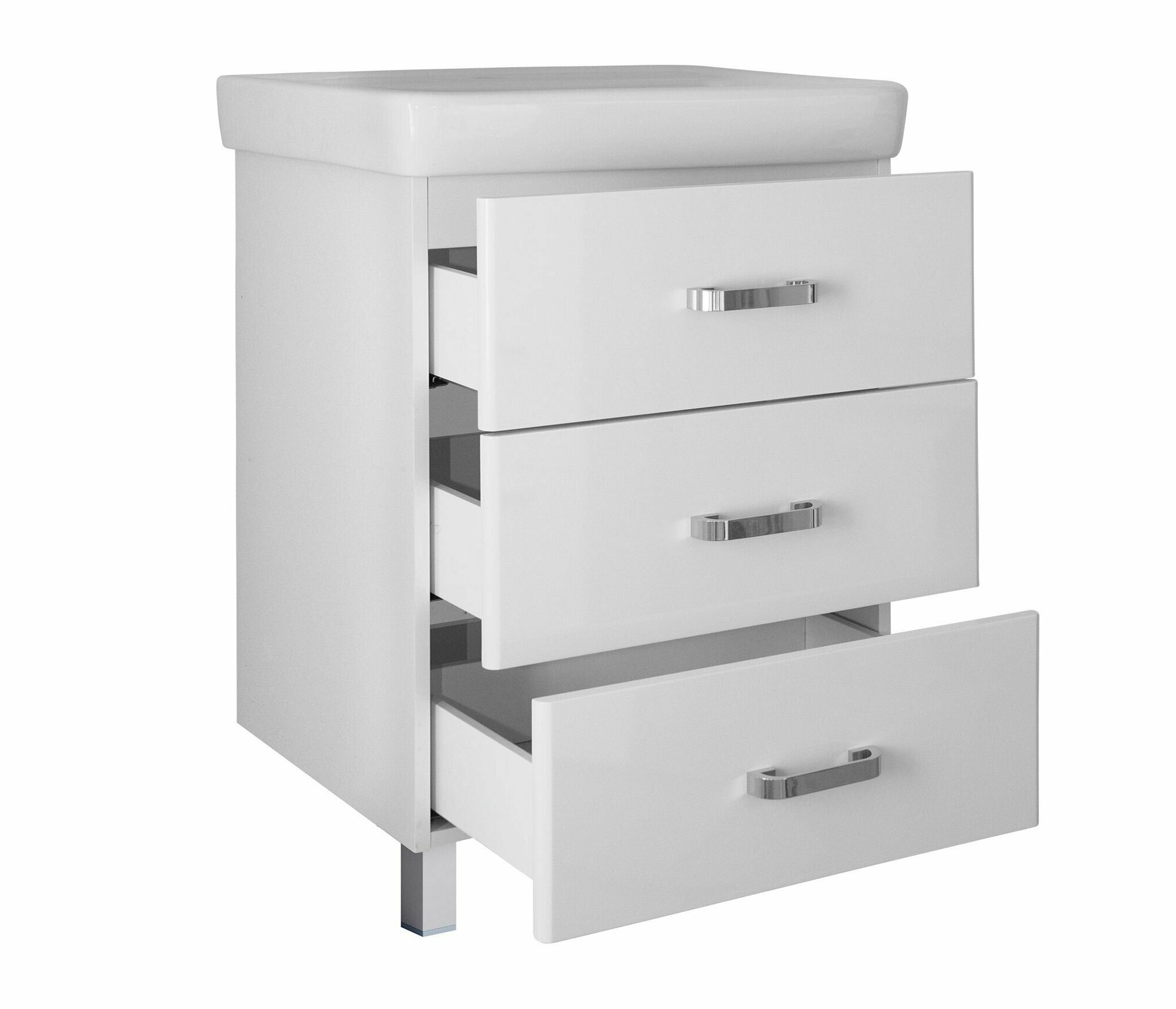 Тумба под раковину Fest-60 MIXLINE Стив-60 белый, напольная 3-ящика (539014)