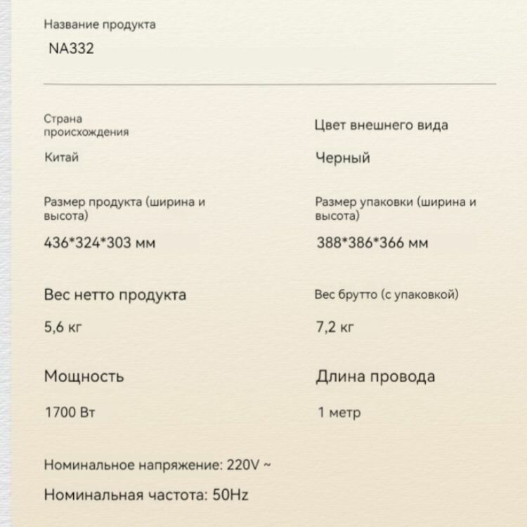 | Длина сетевого шнура | 0.8 м |