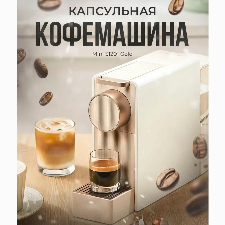 Кофемашина капсульная Xiaomi Scishare Capsule Coffee Machine Mini (S1201), Цвет: Gold золотистый, CN-версия,переходник кладём в подарок