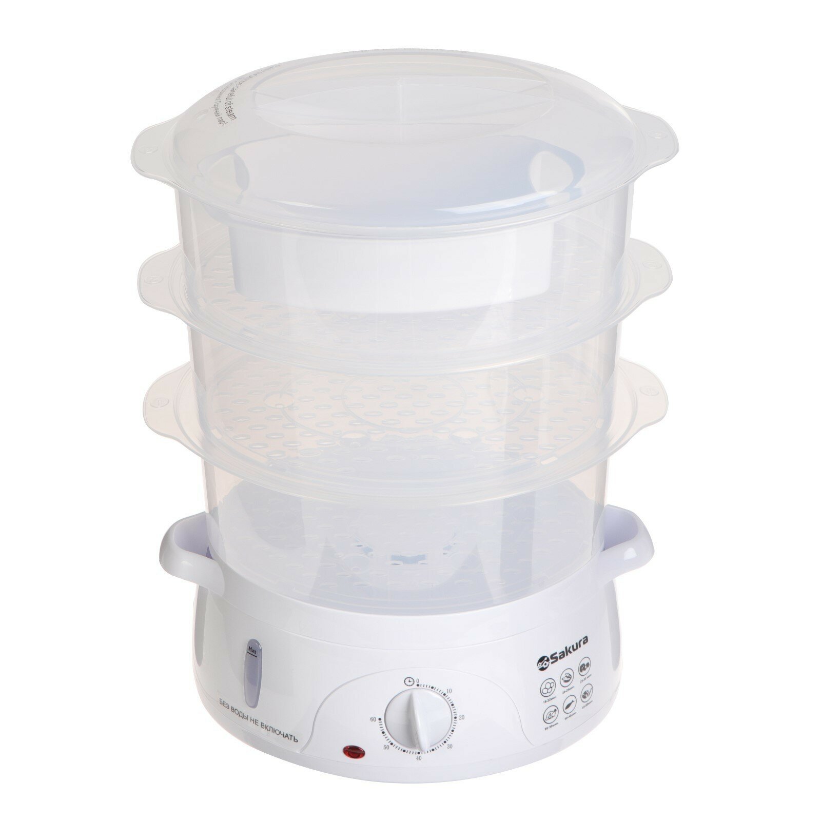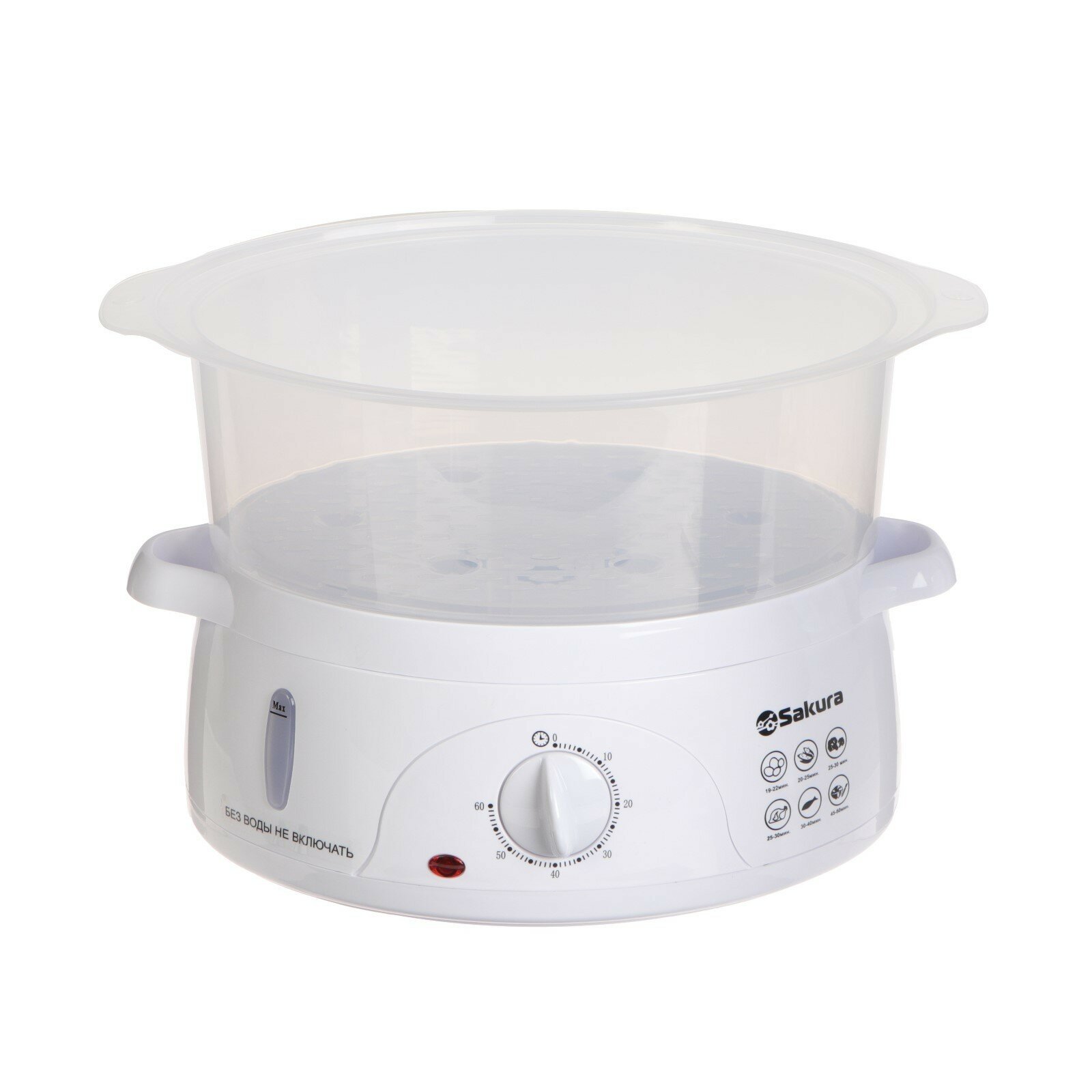 Купить Пароварка Sakura SA-7214 3ч 9л 800Вт белый Мантышница Мантоварка с чашей для риса/яиц (OL)
