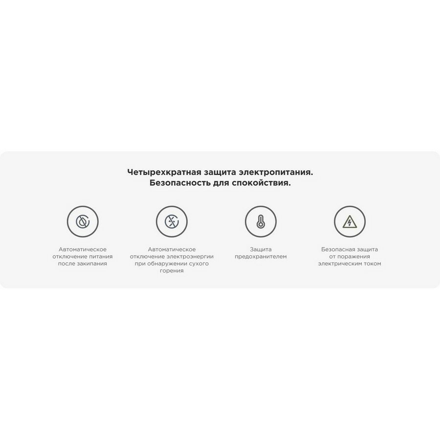 | Безопасность | блокировка включения без воды |