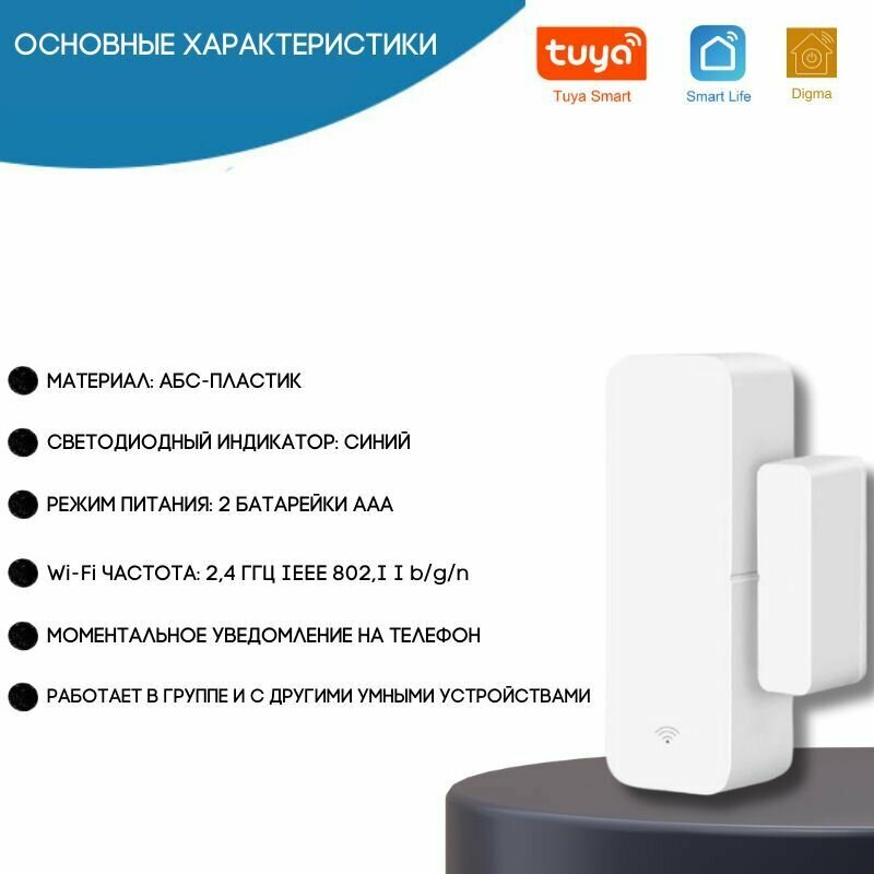Умный беспроводной WI-FI датчик открытия дверей и окон с дистанционным управлением от Tuya Smart Life Digma
