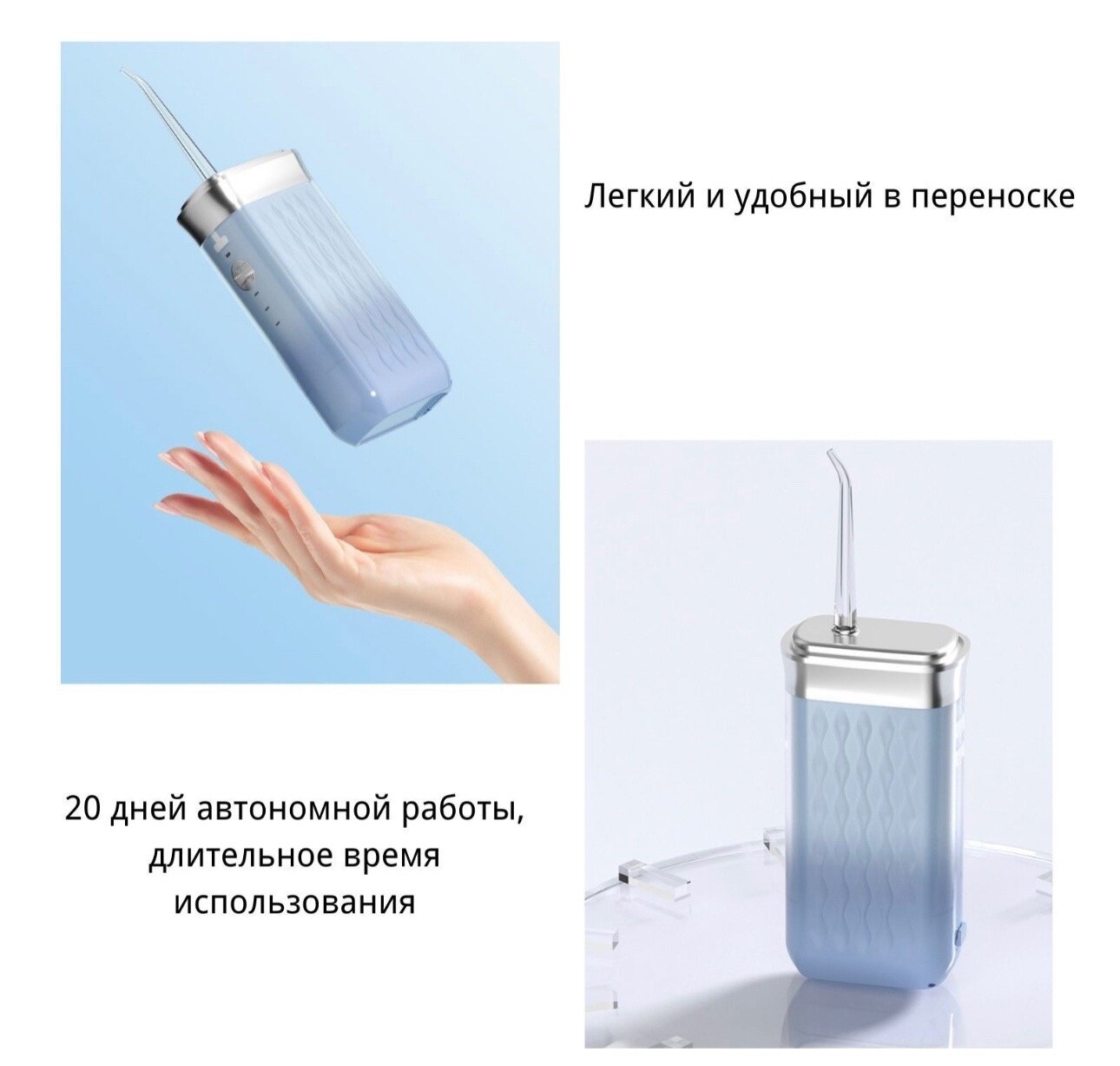 Портативный ирригатор для полости рта с 4 насадками, ирригатор, мини-ирригатор, голубой с розовым интересное: