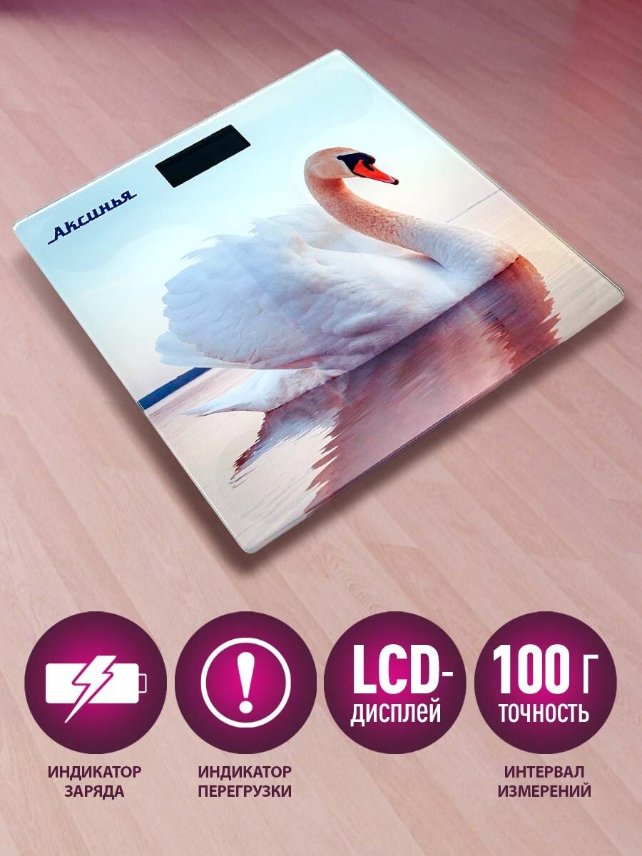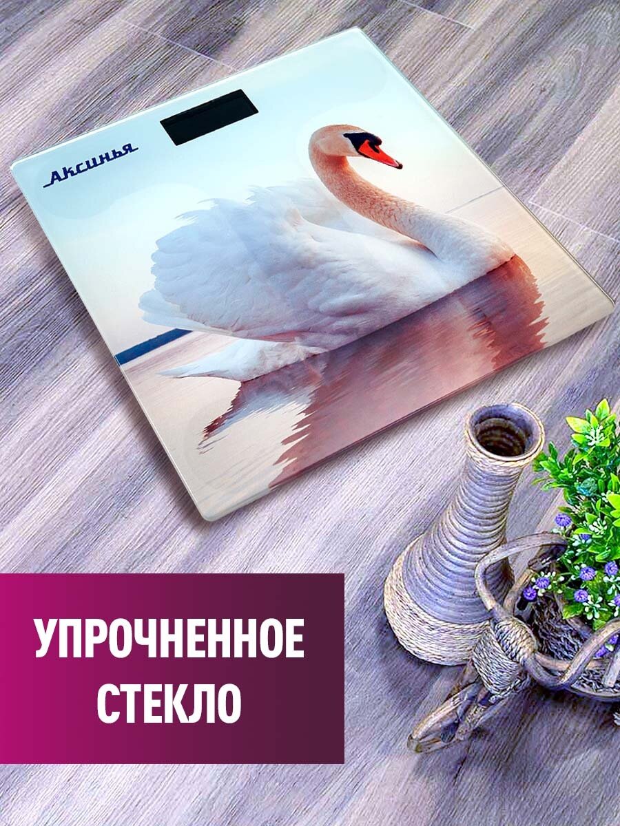 Весы напольные Аксинья КС-6010 "Белый лебедь" электронные, платформа из стекла, до 180 кг интересное: