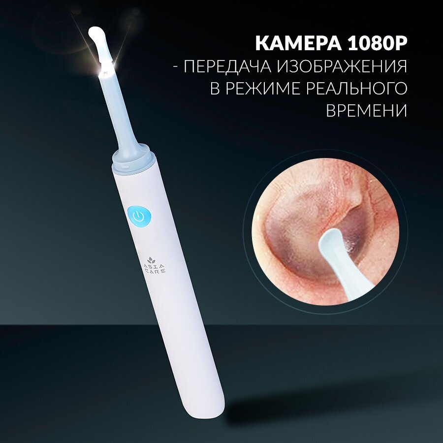 Умная ушная палочка AsiaCare для чистки ушей с камерой, 4 насадки. Прибор для чистки ушей