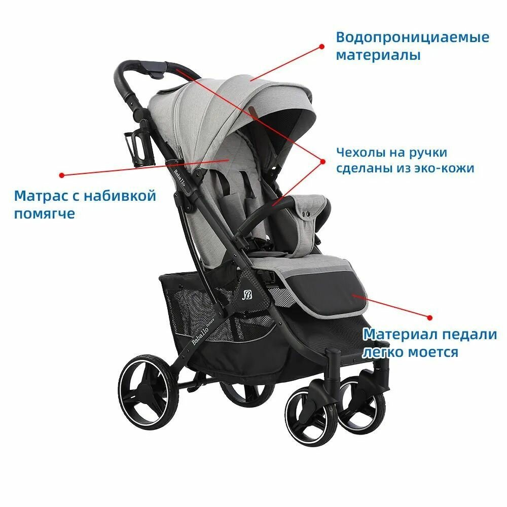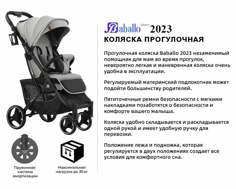 Коляска прогулочная Baballo 2023 Future цвет Серый черная рама