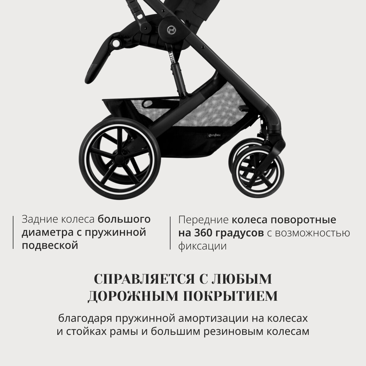 | Особенности шасси | корзина для покупок / перекидная ручка / перестановка блока лицом/спиной / регулировка высоты ручки / Ножной |