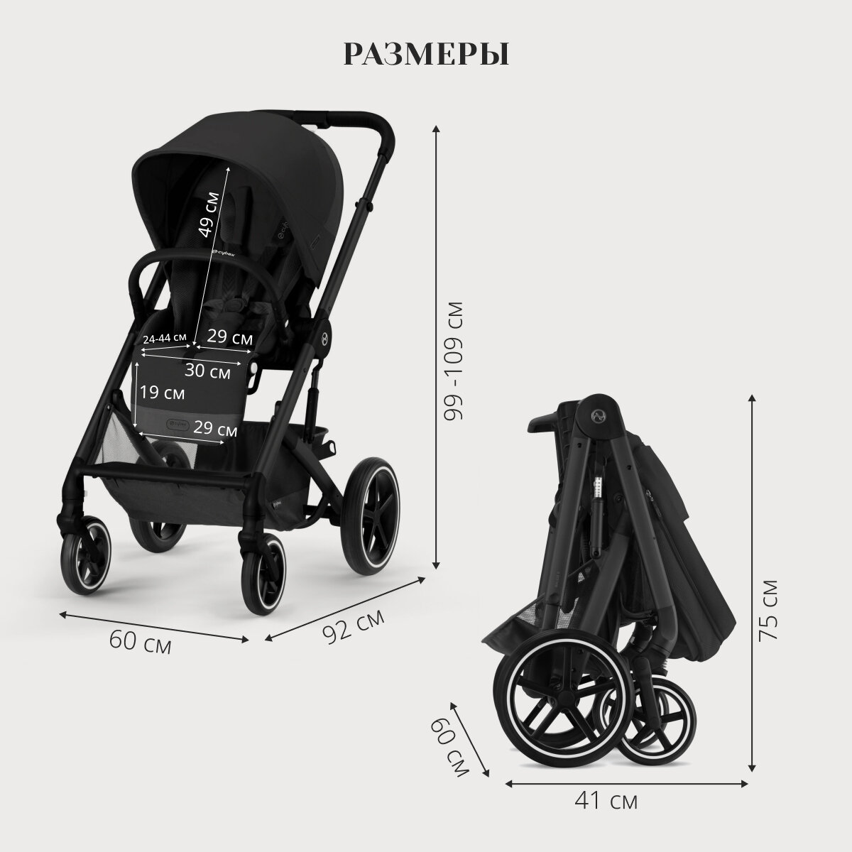 | Колеса | 4 шт., резиновые, 19-28 см |