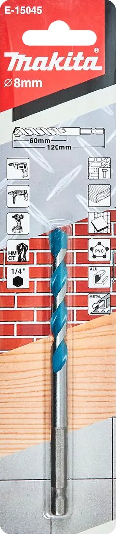 Сверло универсальное Makita 8x60x120, 1/4" (E-15045)