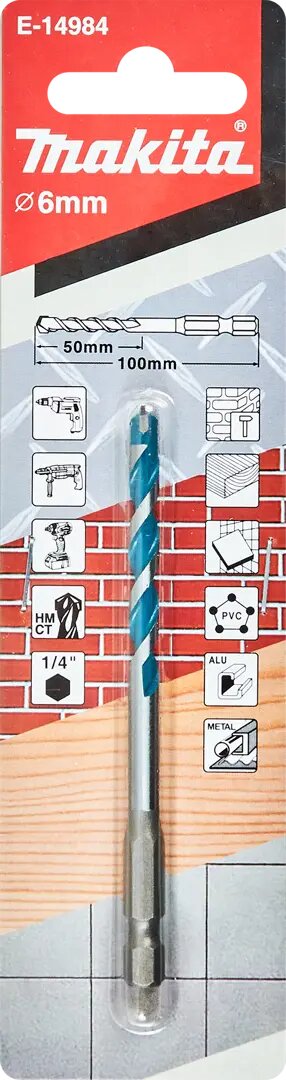 Сверло универсальное 6.0x100, 1/4 E-form Makita E-14984
