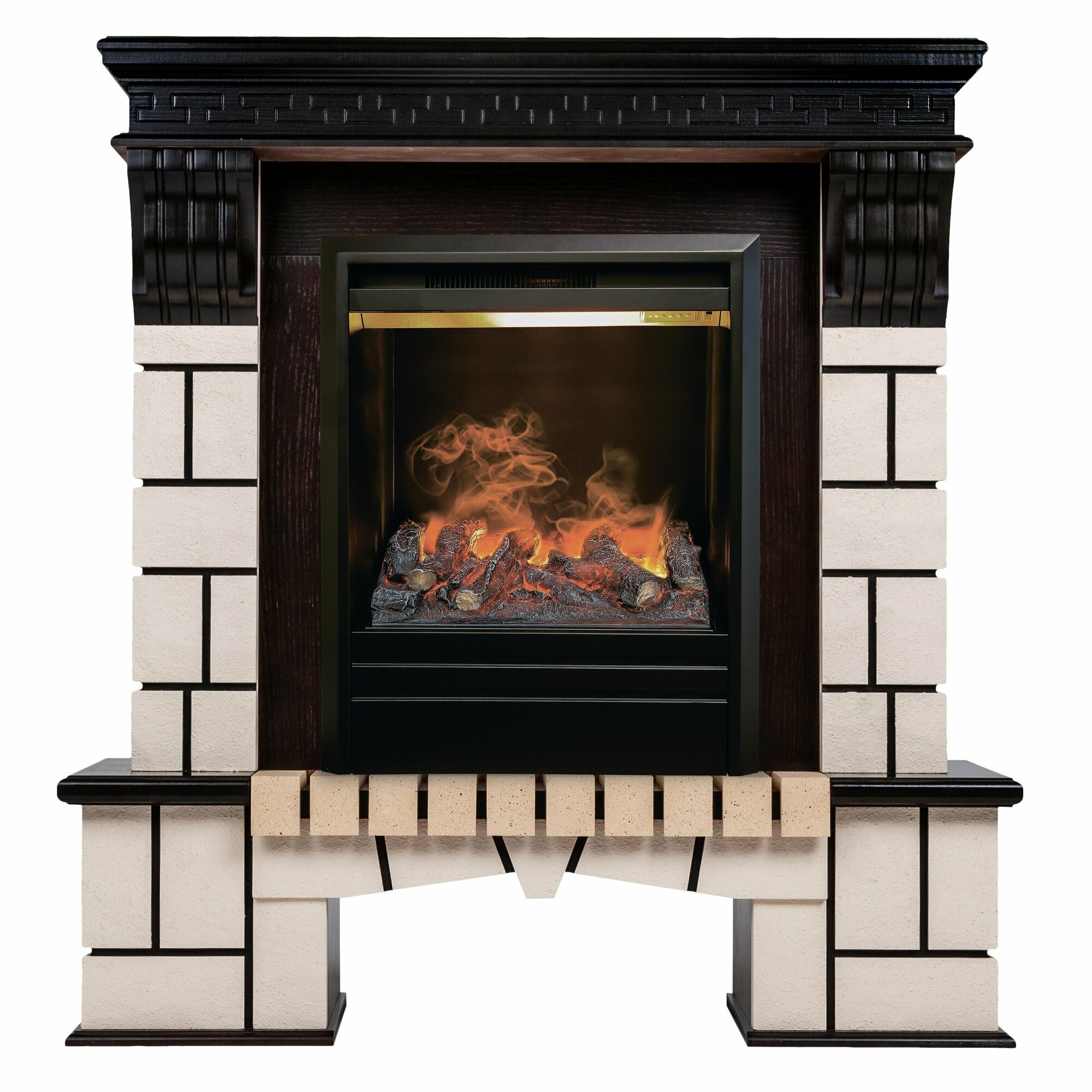 | Комплектация | инструкция, каминный портал обрамление RealFlame Stone AO коричневый, пульт ДУ, электрический очаг RealFlame Olympic 3D |