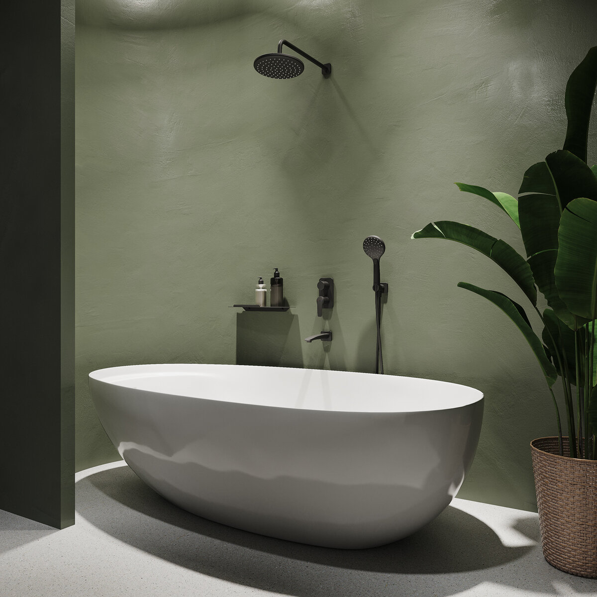 Душевая система IDDIS скрытого монтажа с тропическим душем, ручным душем и изливом, черный матовый, Ray, (RAYBL03i68)