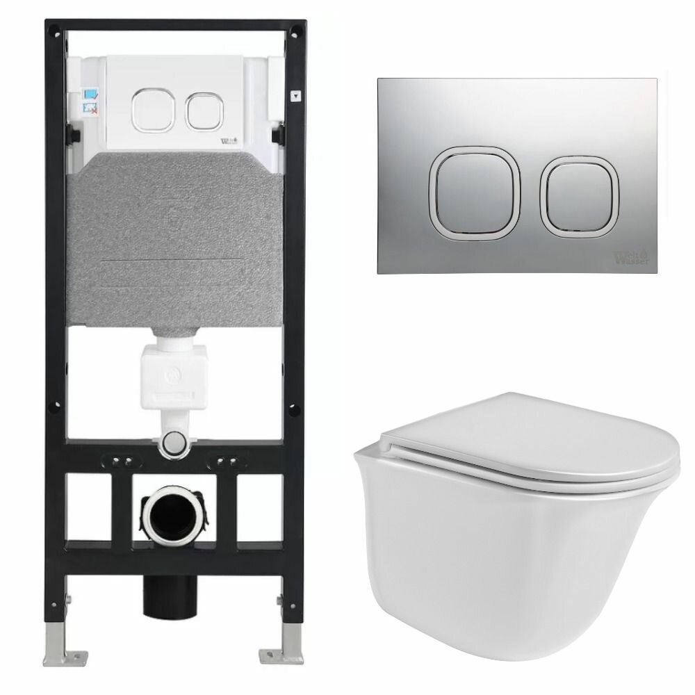 Комплект WeltWasser 10000006852 унитаз Telbach 004 GL-WT + инсталляция Amberg 506 + кнопка смыва Amb