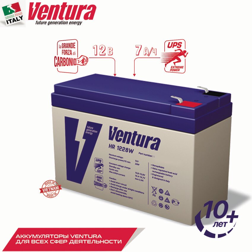 Ниже Вы можете прочитать отзывы на Аккумуляторная батарея VENTURA HR 1228W для ИБП 12В, 7Ач [vnthr1228ws63], ознакомится с подробными характеристиками, посмотреть интересные обзоры и фотографии на Аккумуляторная батарея VENTURA HR 1228W для ИБП 12В, 7Ач [vnthr1228ws63].