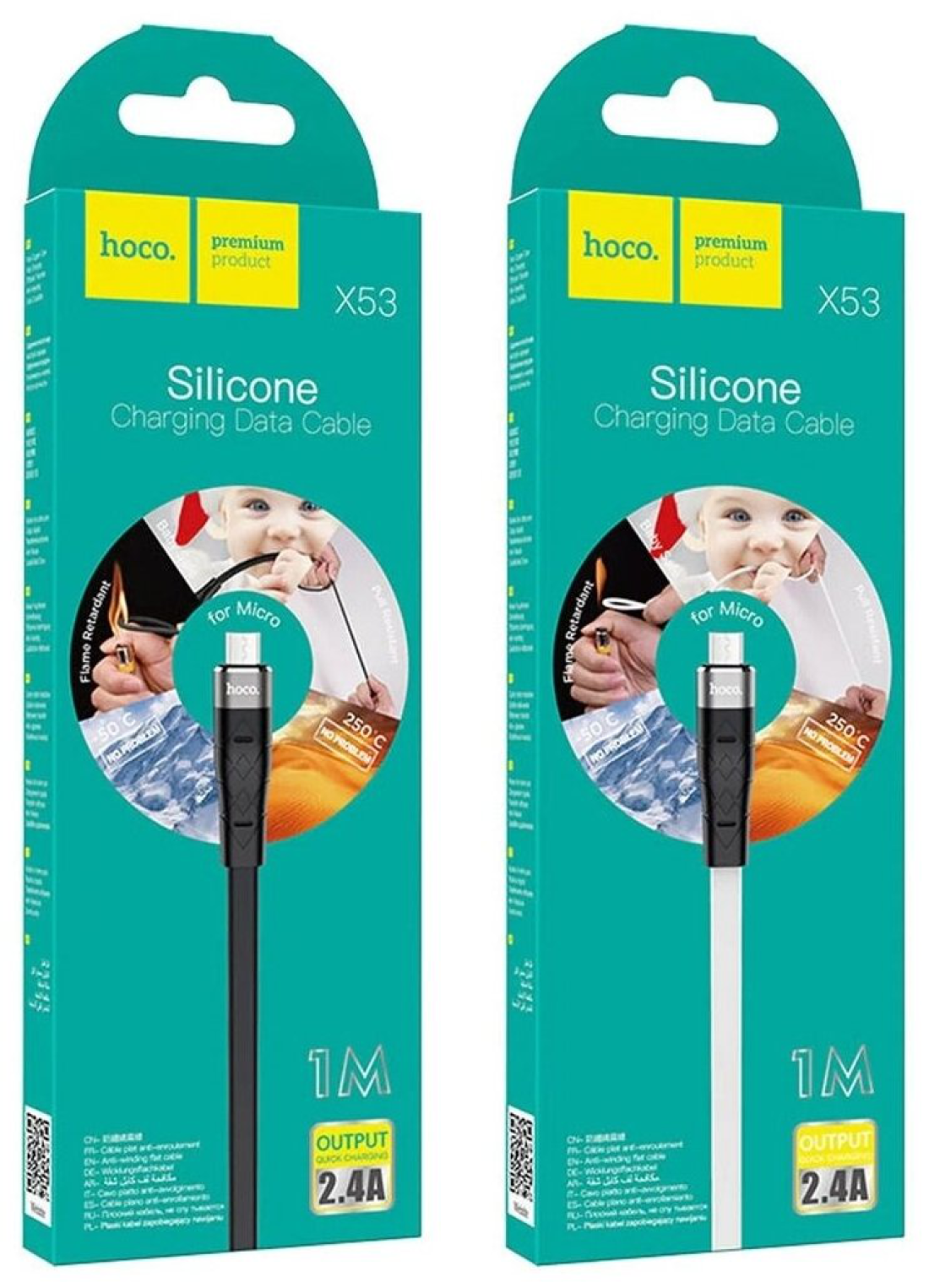 Usb Кабель-зарядка Micro Hoco X53 Angel 2.4A 1м плоский силиконовый белый