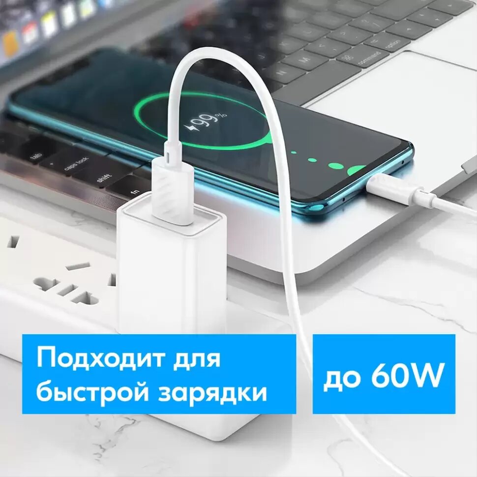 Кабель Hoco X88, провод для андроид, быстрая зарядка для телефона, USB Type-C, белый, длина 1м
