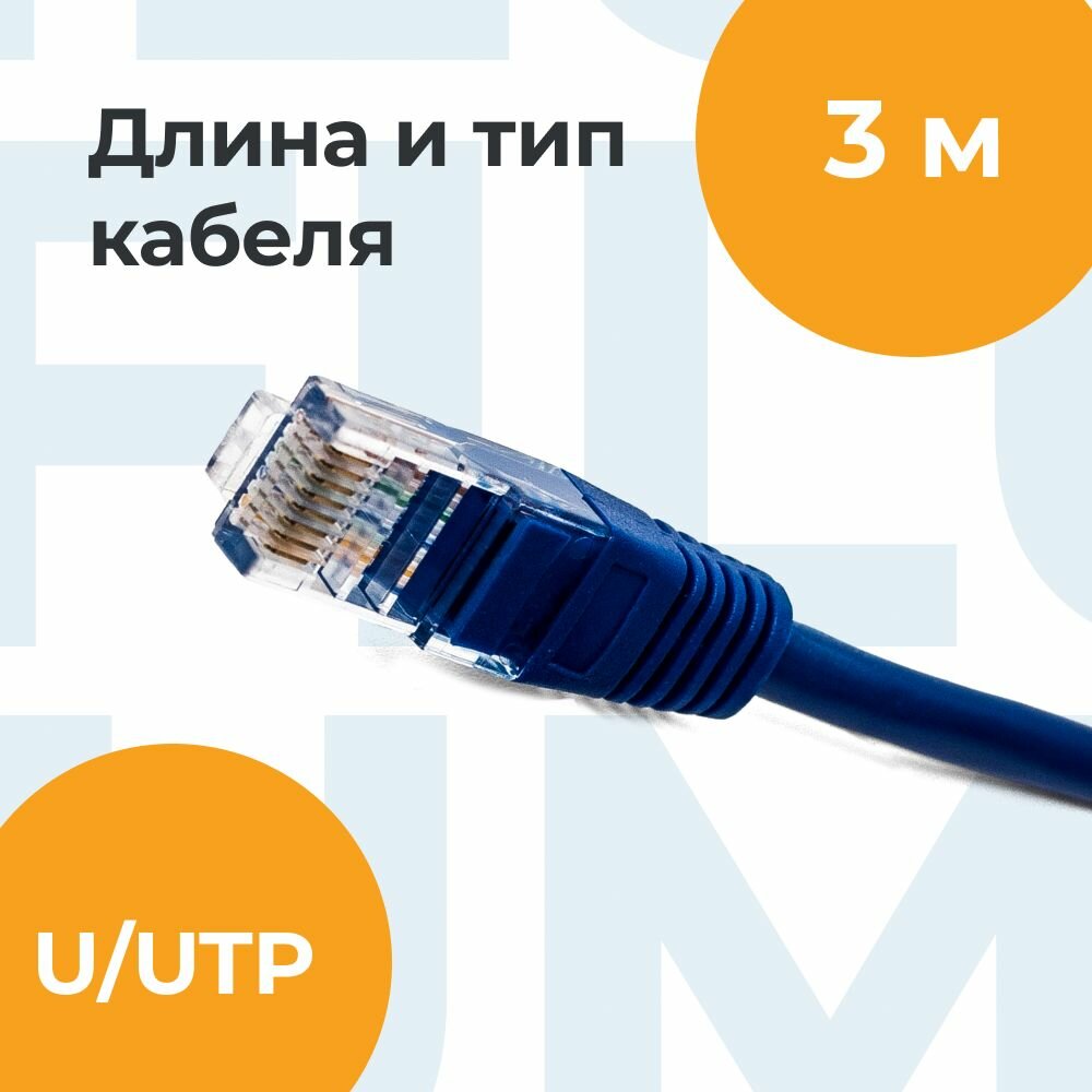 Патч-корд U/UTP 5e кат. 3м Filum FL-U5-3M-BL, кабель для интернета, 26AWG(7x0.16 мм), омедненный алюминий (CCA), PVC, синий