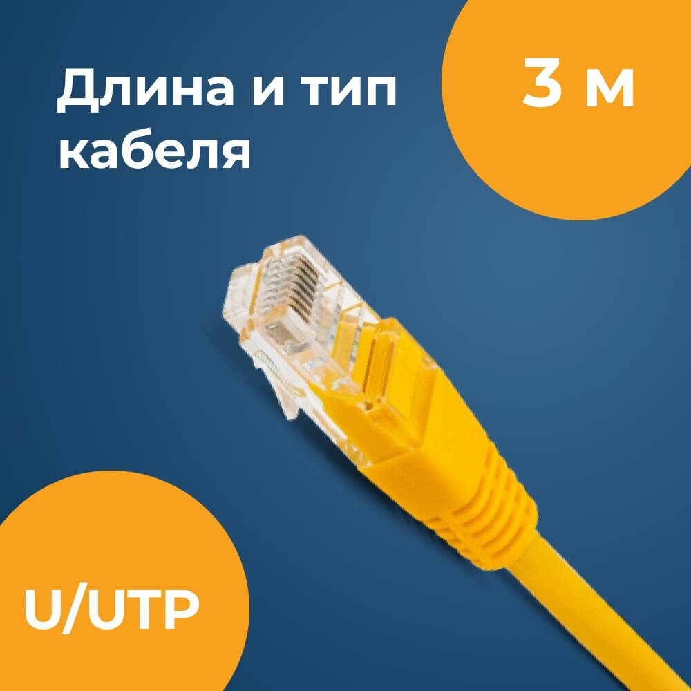 Патч-корд U/UTP 5e кат. 3м Filum FL-U5-3M-Y 26AWG(7x0.16 мм), кабель для интернета, омедненный алюминий (CCA), PVC, жёлтый