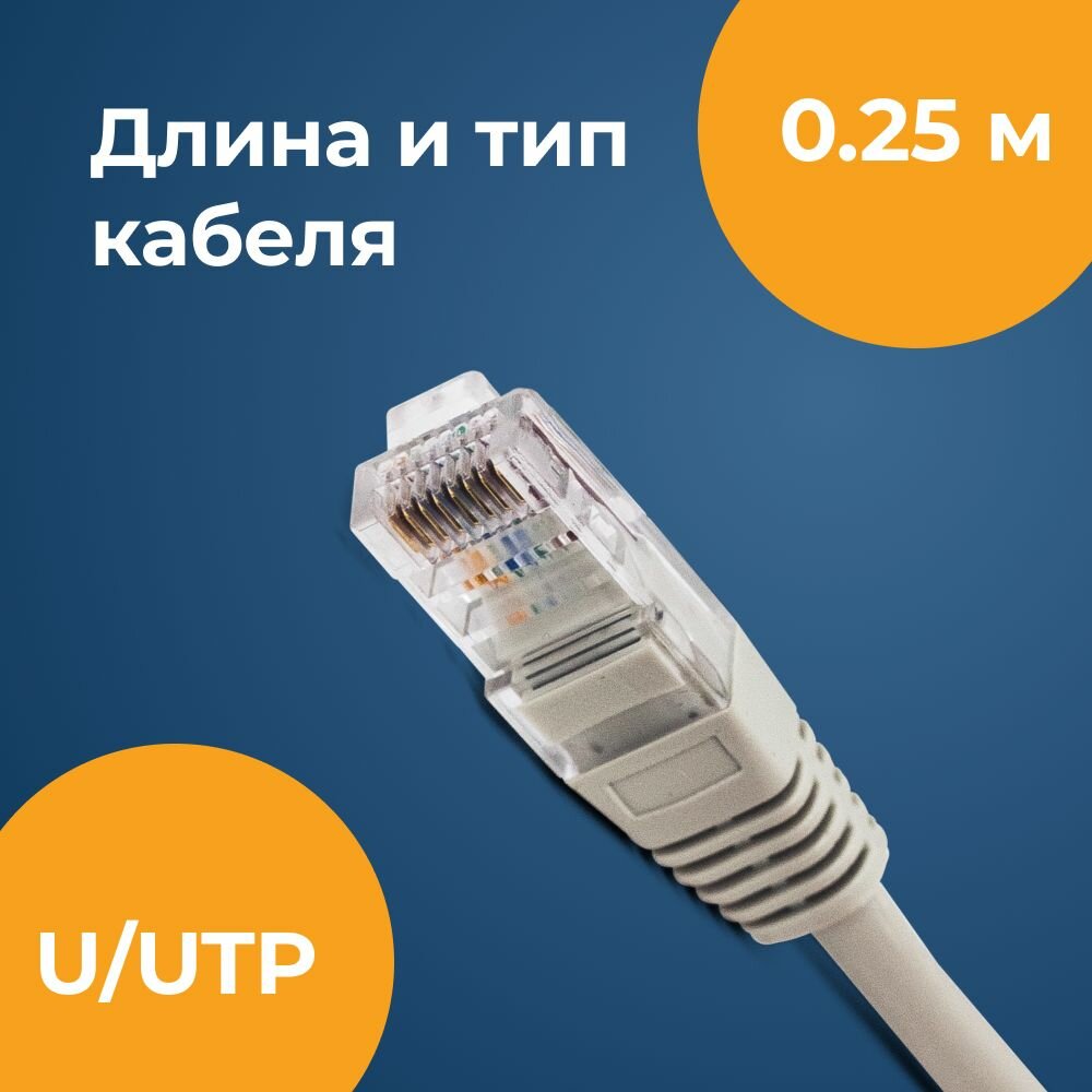 Купить Кабель Ethernet патч-корд Filum кат. 5e 0.25м, серый U/UTP /FL-U5-0.25M/
