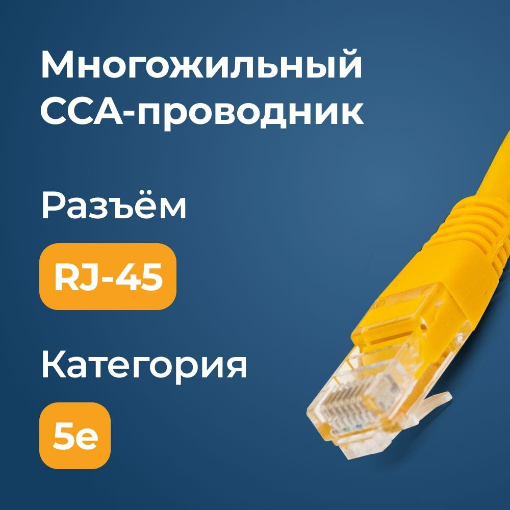 Filum Кабель патч-корд u/utp 5e кат, 5м 26awg(7x0,16 мм), омедненный алюминий (cca), pvc, жёлтый FL-U5-5M-Y