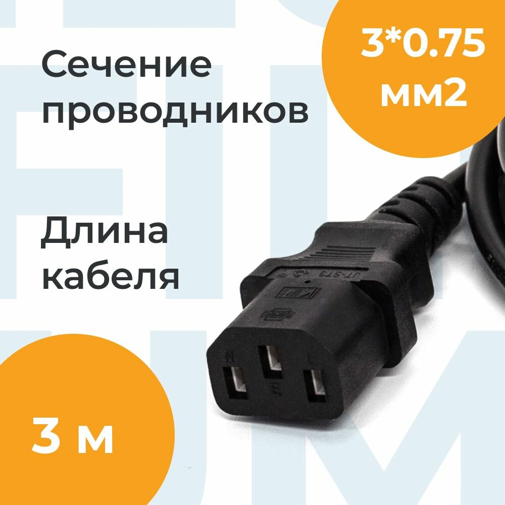 Filum Кабель питания С13- C14, 3х0.75мм, 220В, 10A, чёрный, 3м [FL-PC10-C13-C14-3M] (873349)