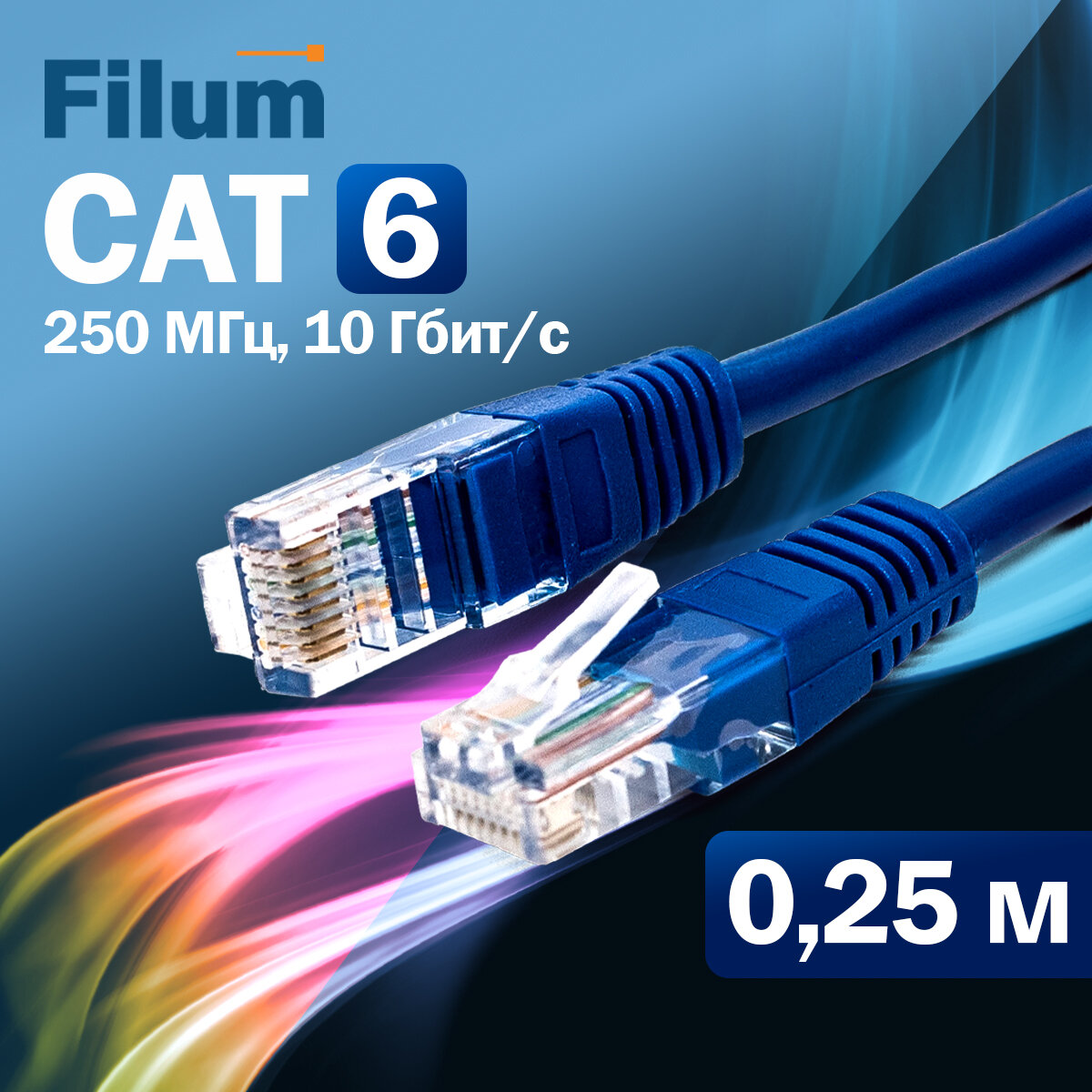 Купить Кабель Ethernet патч-корд Filum кат. 6, 0.25м, синий, U/UTP, /FL-U6-0.25M-BL/