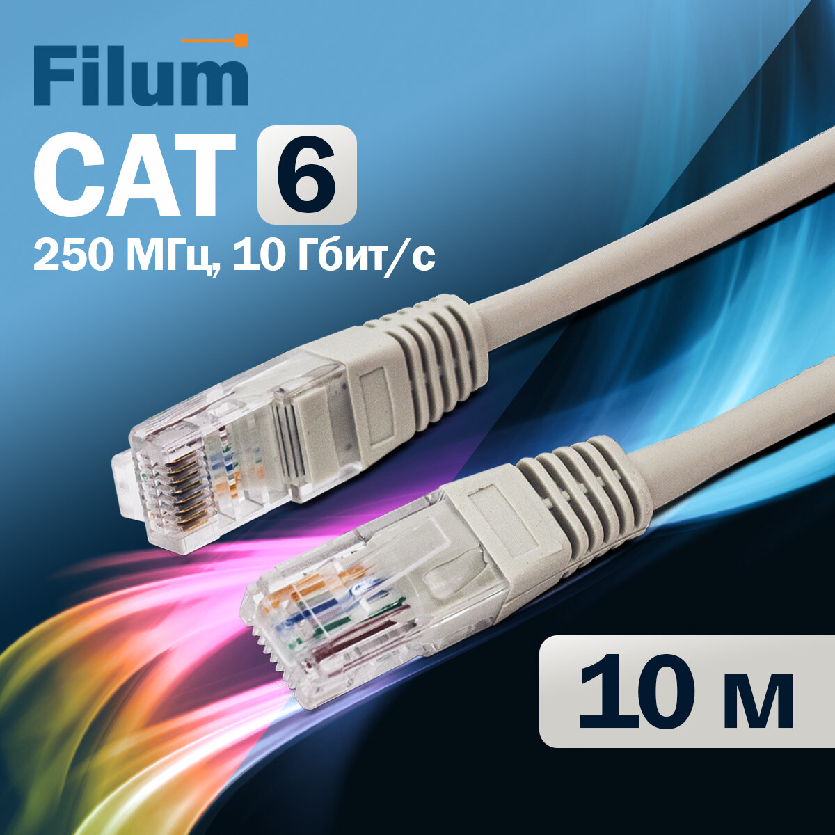 Купить Кабель Ethernet патч-корд Filum кат. 6, 10м, серый, U/UTP, /FL-U6-10M/