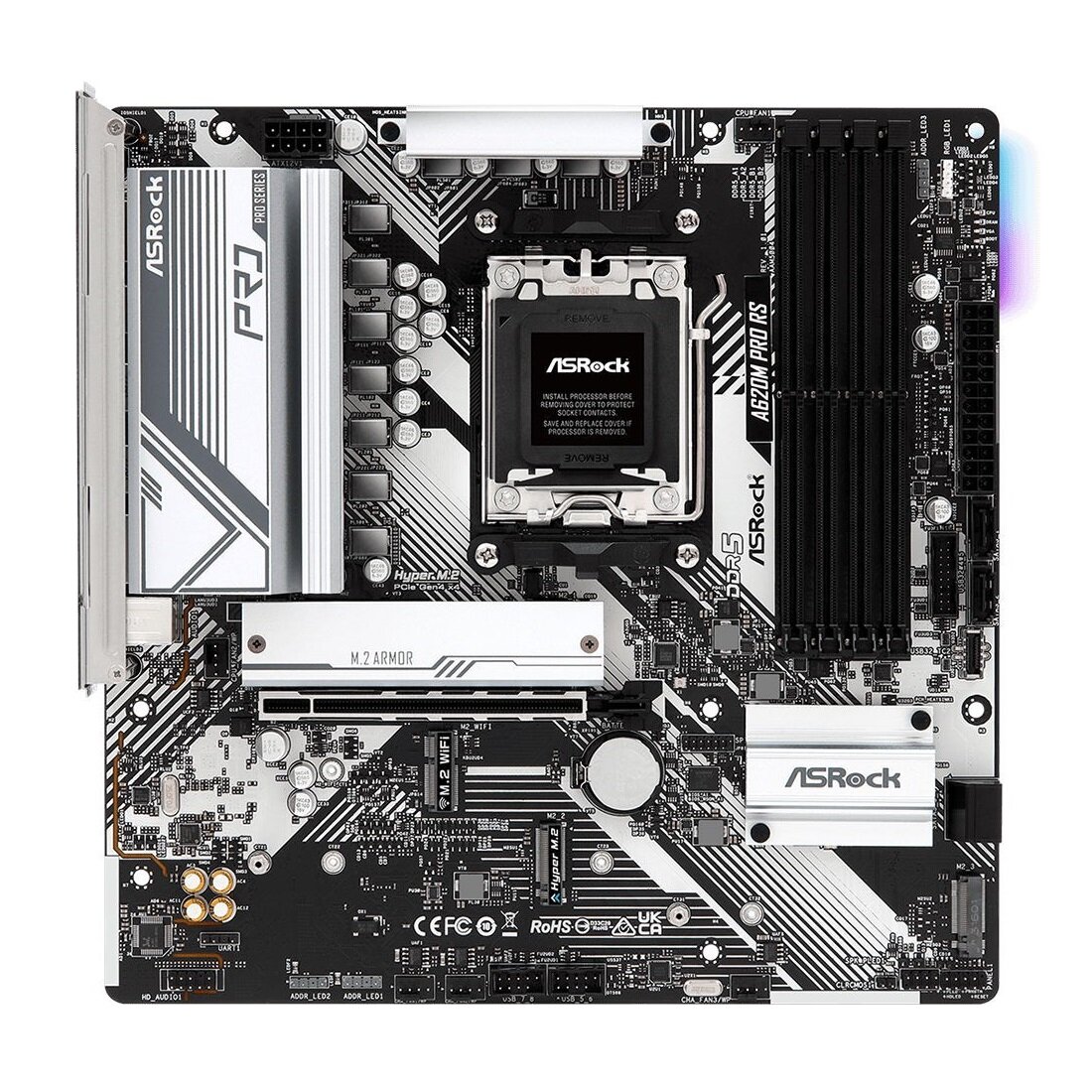 Купить Материнская плата ASRock A620M Pro RS (mATX, A620, 4хDDR5, 3хM.2, 1хPCIe, 1хHDMI, 1хDisplayPort)