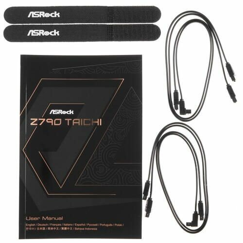 | Комплектация | 4 кабеля SATA, скоба для беспроводного адаптера USB, антенна ASRock WiFi 2.4/5/6 ГГц, 4 винта для разъемов M.2 |