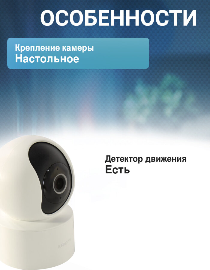 | Дополнительная информация | комплектация: IP-камера, кабель питания, комплект аксессуаров для настенного монтажа, руководство пользователя; три метода хранения: локальная карта Micro SD, устройства NAS и облако; карты памяти: MicroSD (до 256 Гб); слот для карты памяти: отдельный; управление со смартфона через приложение Mi Home; совместимые ОС: iOS 12, Android 8.0 и выше; апертура: F2.1; Wi-Fi (802.11): g, n, b |