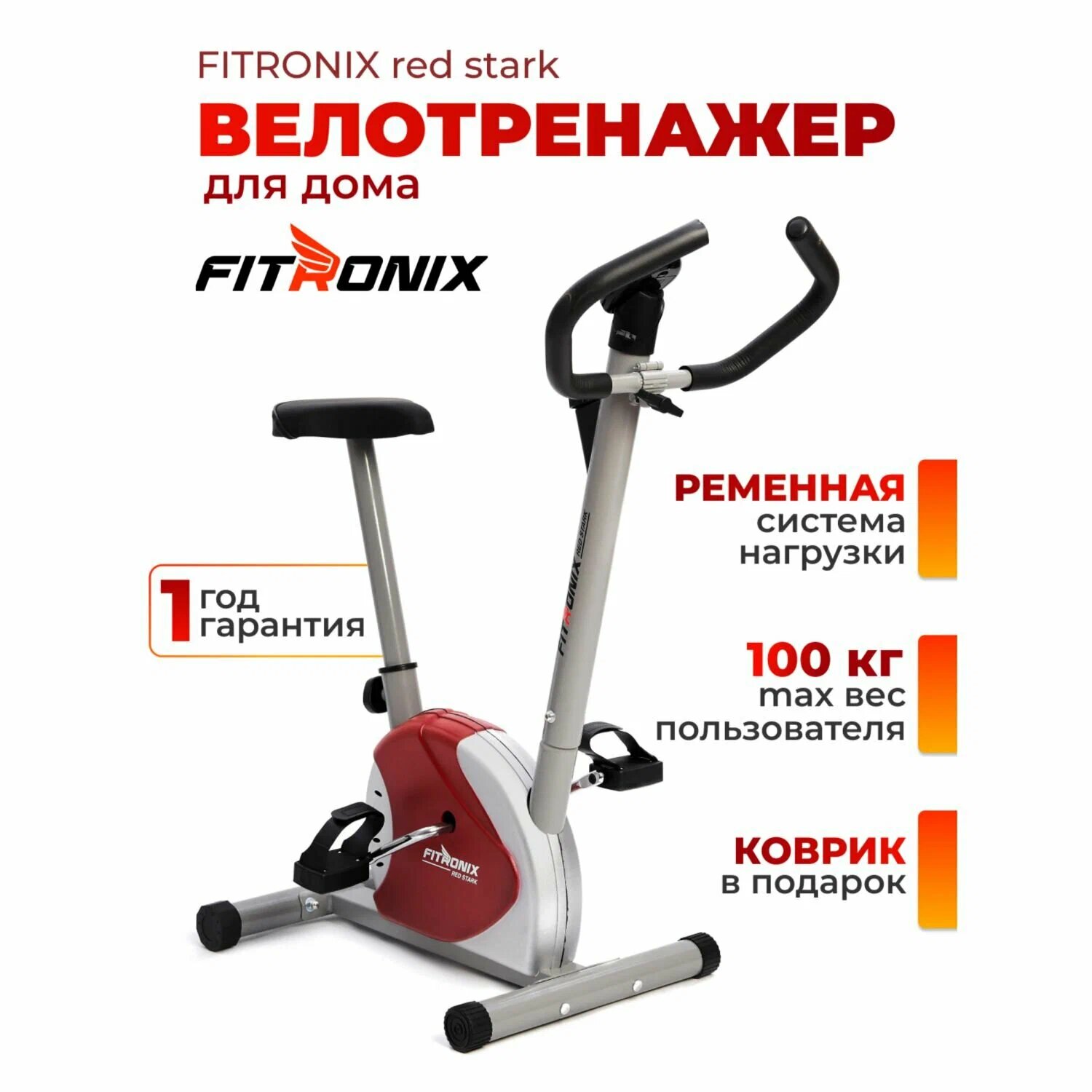 Велотренажер для дома FITRONIX RedStark ременной кардиотренажер для тренировок и реабилитации