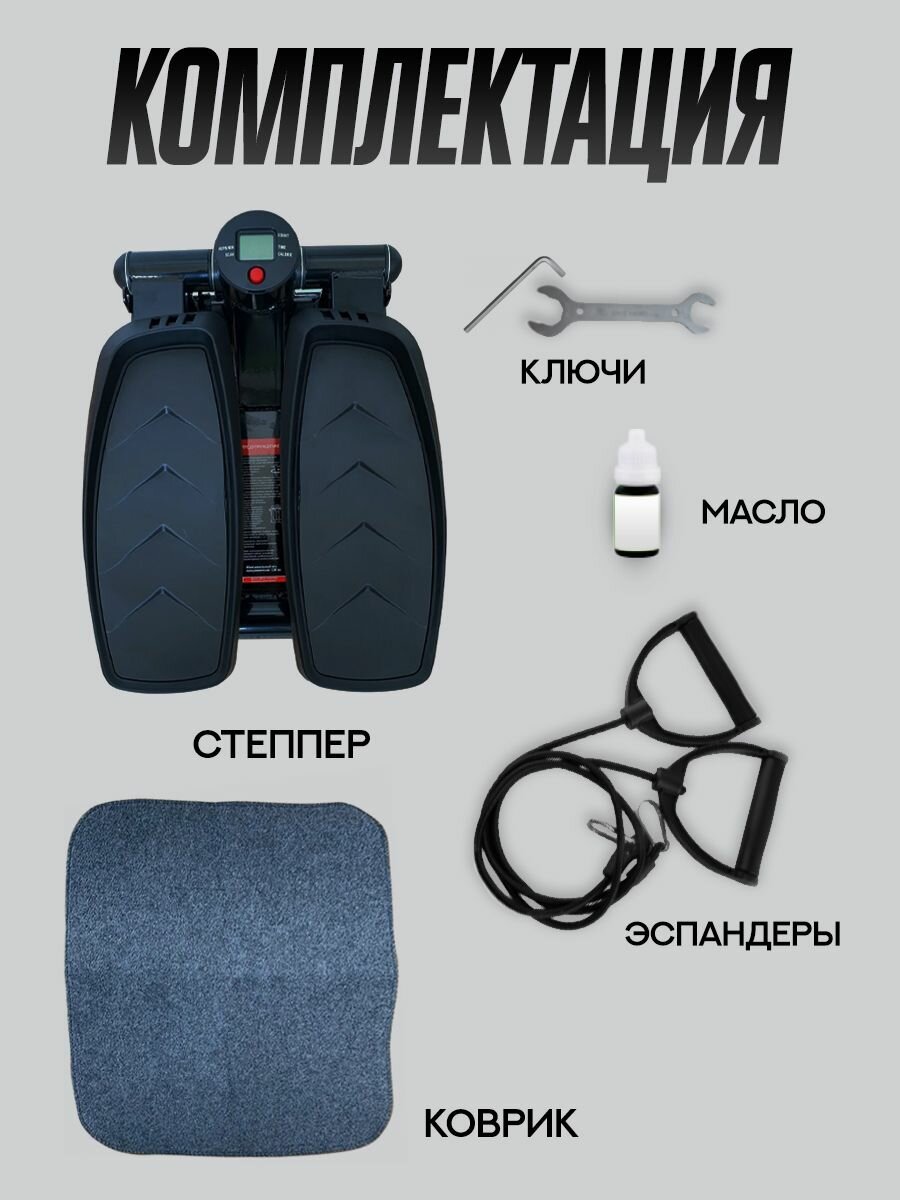 Мини степпер тренажер для дома с эспандерами, цвет черный интересное: