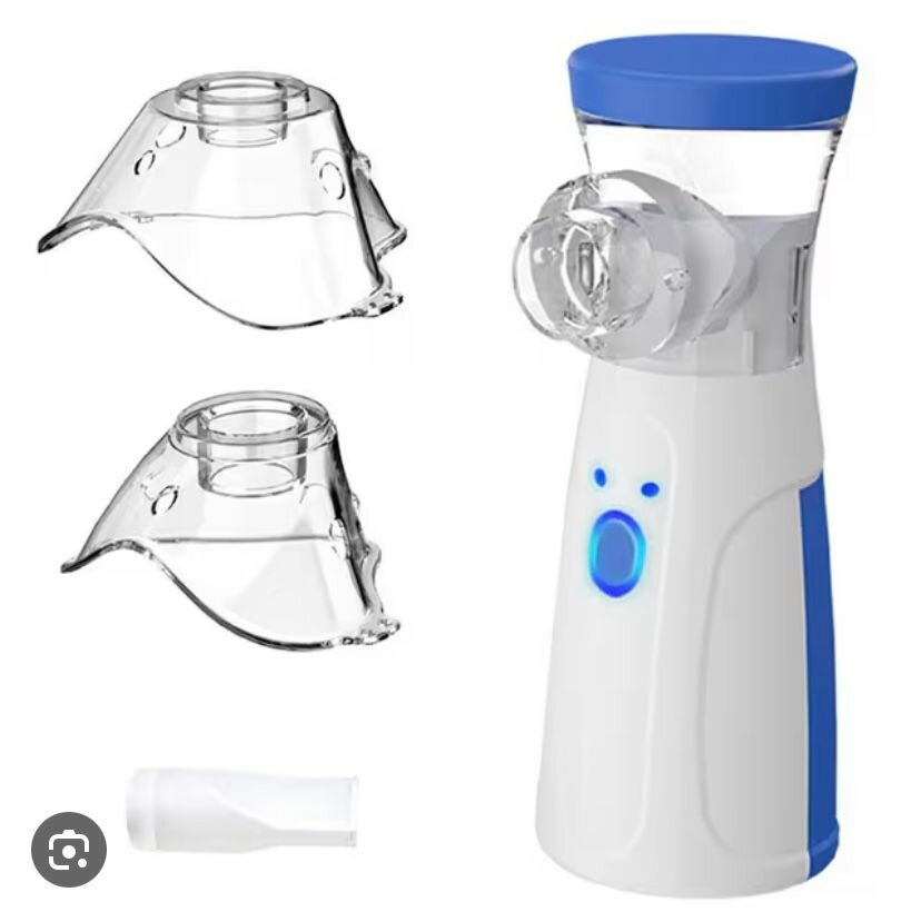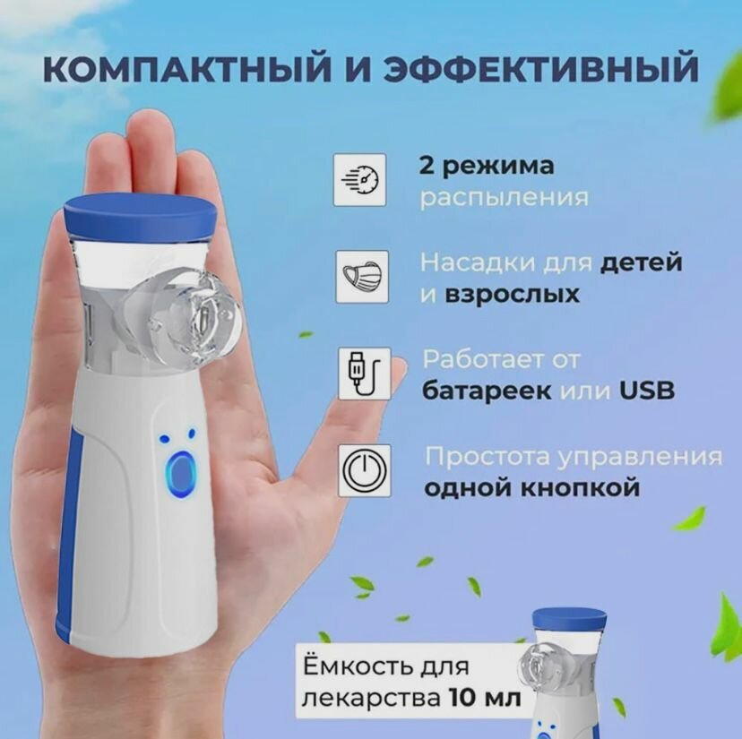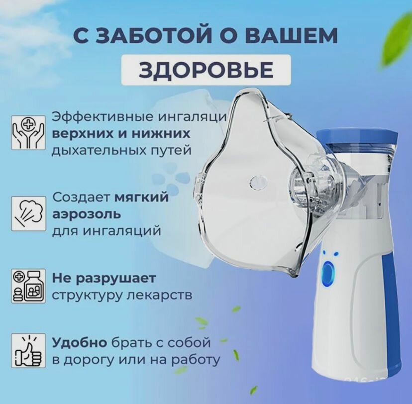 Ингалятор портативный бесшумный mesh небулайзер JSL-W302 для детей и взрослых с насадками для лечения заболеваний носа и горла, цвет белый с синим интересное: